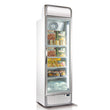 Featuring a large 364 litre gross total capacity, the Husky Single Door Vertical Glass Door Commercial Freezer in white finish is the ideal solution for any commercial or retail setting. This PRO range upright display freezer has its entire R290 refrigeration mechanism mounted on a sled which is accessible from the front, making it easy to swap components and make repairs. The powerful compressor cooling system provides freezing capability down to -25 degrees Celsius with an electronic temperature control allowing you to easily set the unit to the desired temperature. A full length LED illumination system with on/off switch and fully adjustable shelving offers great visibility and flexibility. The triple glazed glass doors offer superior insulation helping to delivery an energy efficient outcome that looks impressive.