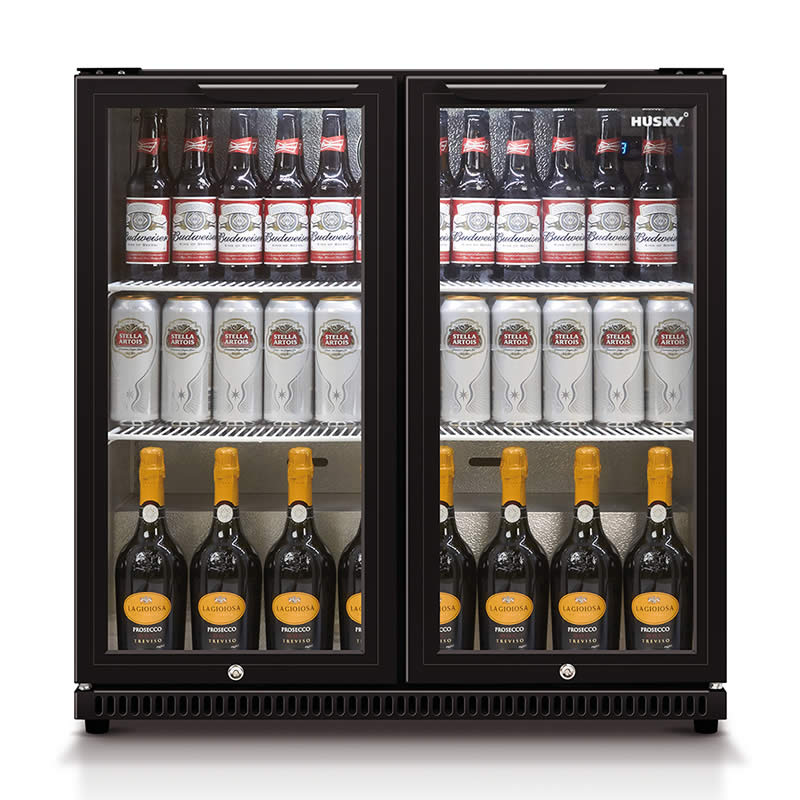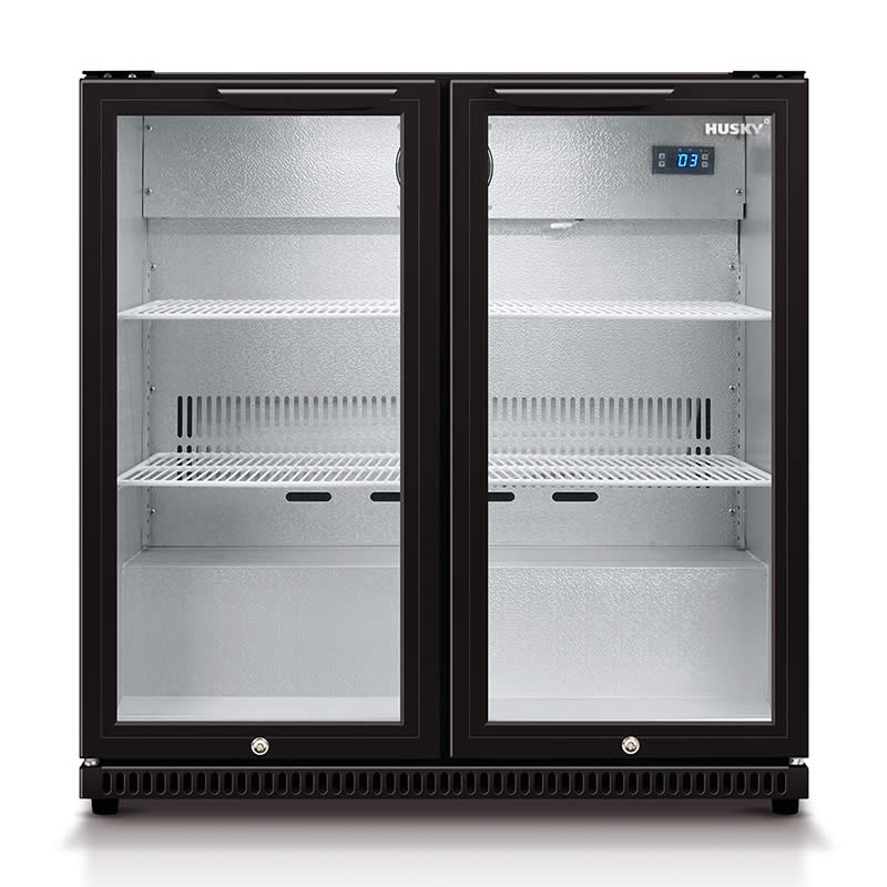 Husky 190L Double Glass Door Outdoor Bar Fridge/Drinks Chiller in Black (HUS-C2-840-BLK)