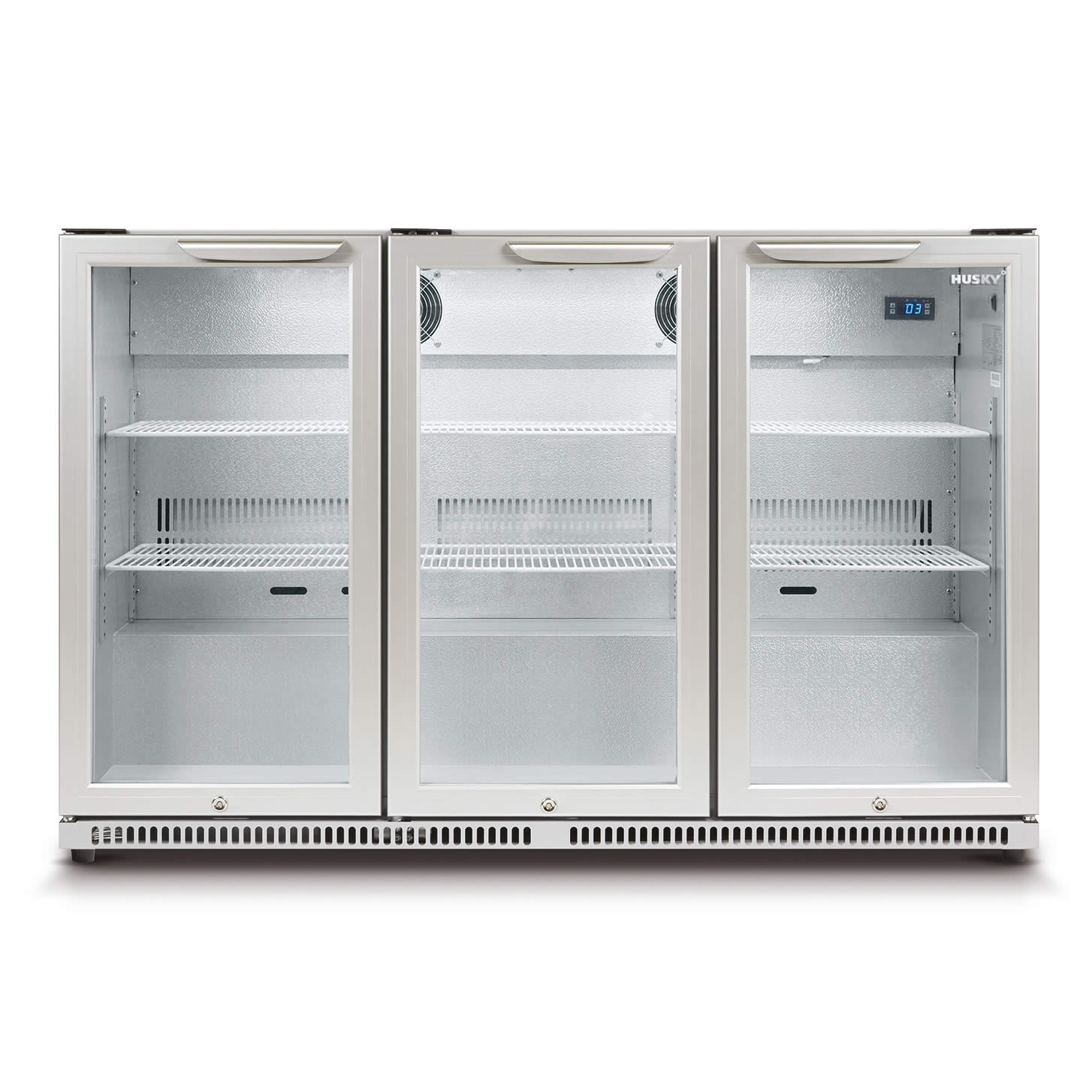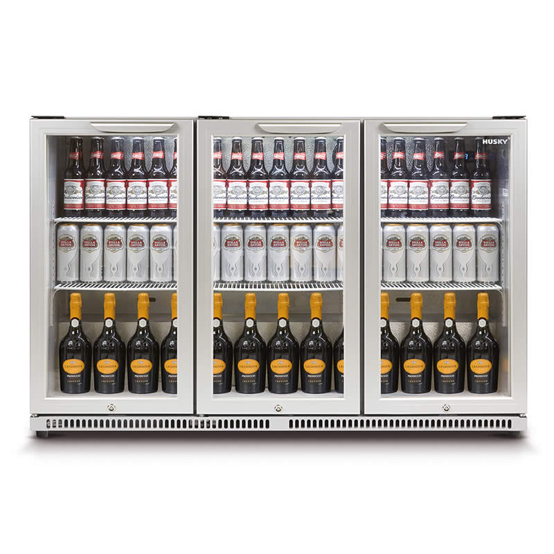 Husky 307L Triple Glass Door Bar Fridge/Drinks Chiller In Silver (HUS-C3-840)