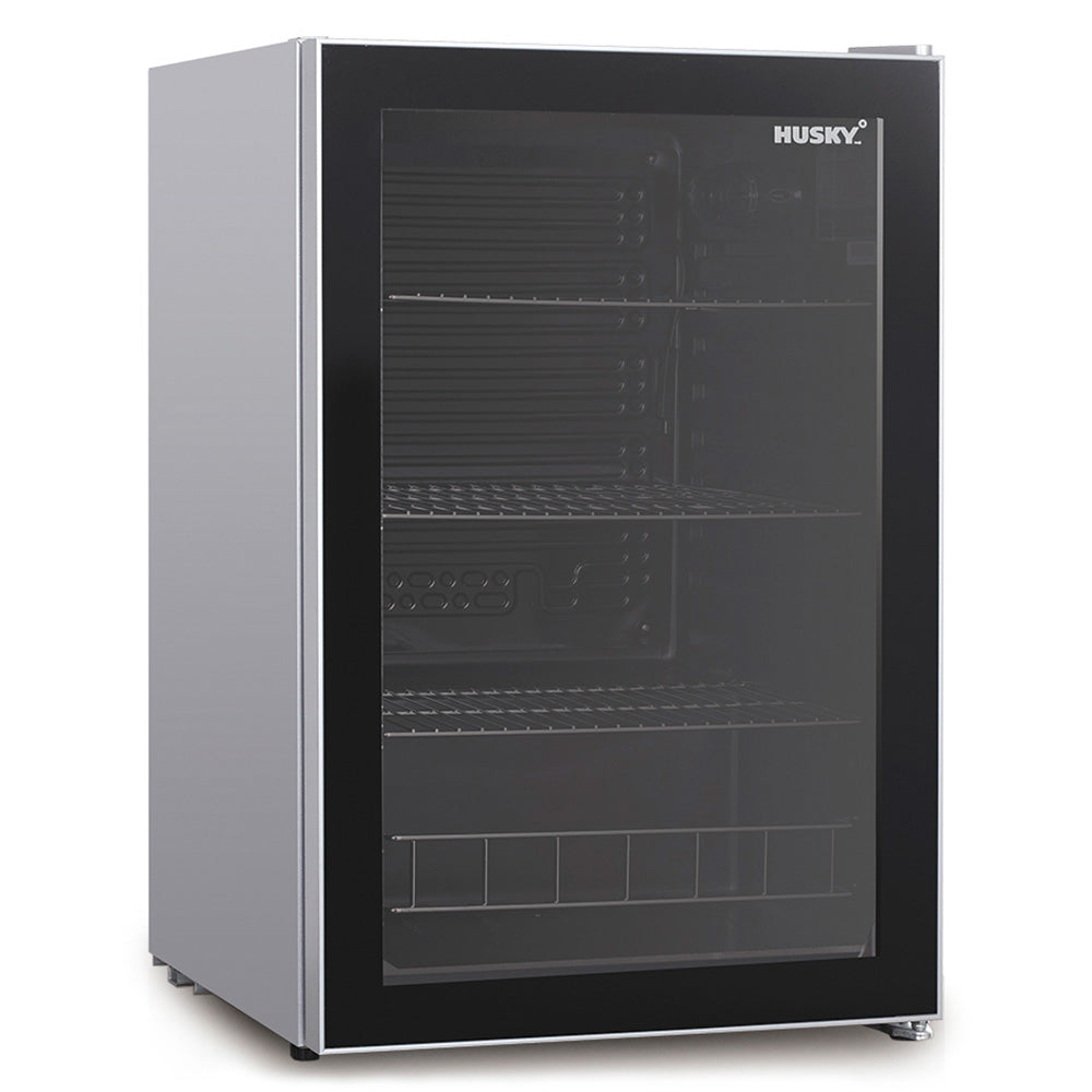 Husky 130L Indoor Bar Fridge With Anti-Condensation Glass Door in Silver (HUS130HDSIL)
