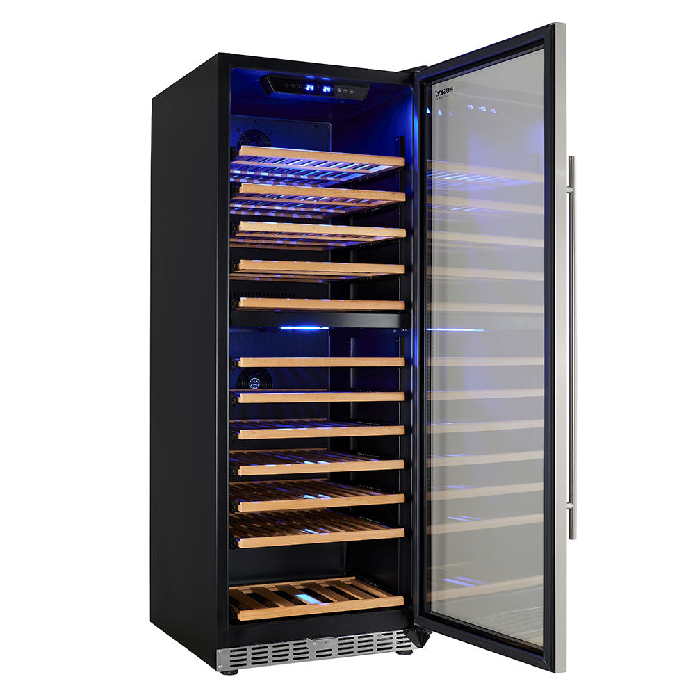- Large 380 Litre capacity, with the ability to hold 128 bordeaux wine bottles (64 upper zone, 64 lower zone).